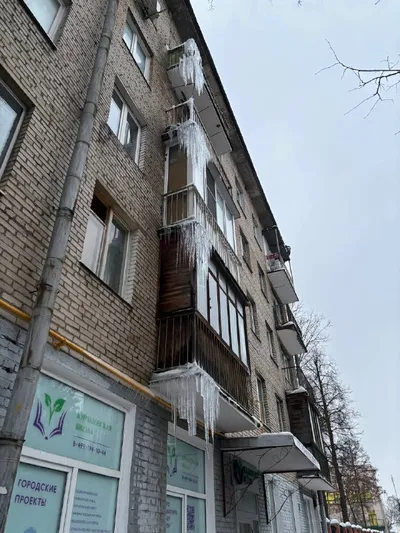 🤯 Огромная ледышка упала с крыши и повредила балкон На улице Живописная, 20 огромная ледышка сорвалась с крыши, снесла часть балкона и упала на машину. Сейчас с дома свисает такая же — опасность с