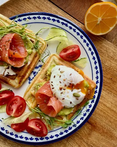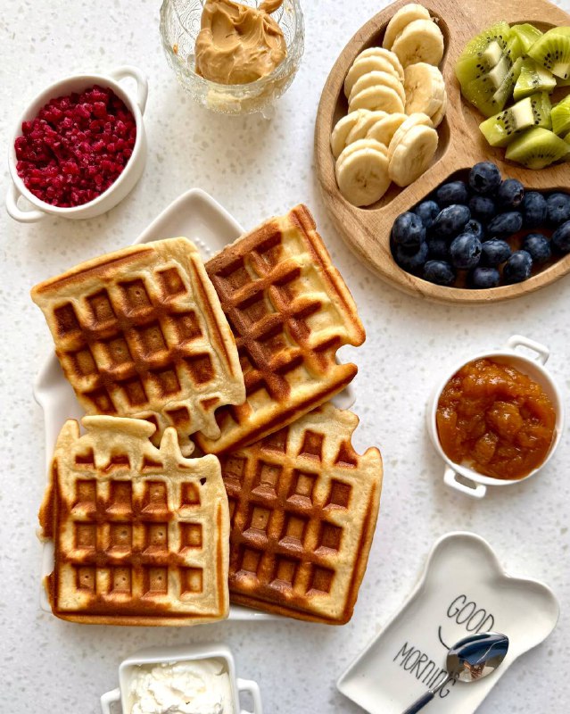 Завтрак 🫐 долго думала, как просклонять «понедельниковый», решила оставить просто «завтрак» 🙂 Вафли: 🟠2 яйца 🟠сахар (если хотите сладкие) 🟠щепотка соли 🟠2-3 ложки растительного масла 🟠100мл
