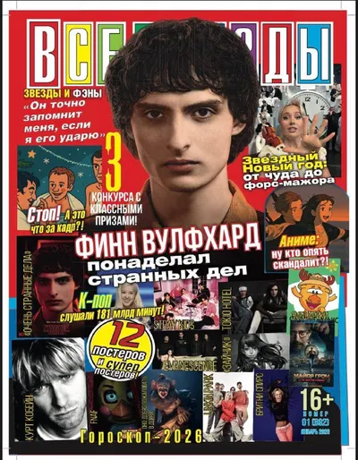 ⭐️ Помните журнал «Все звёзды»? Он жив. Я увидела его в магазе на новогодних праздниках и именно что выпала в осадок. Тот же дизайн, та же концепция. На обложке — Финн Вулфхард, Клава Кока, персонажи