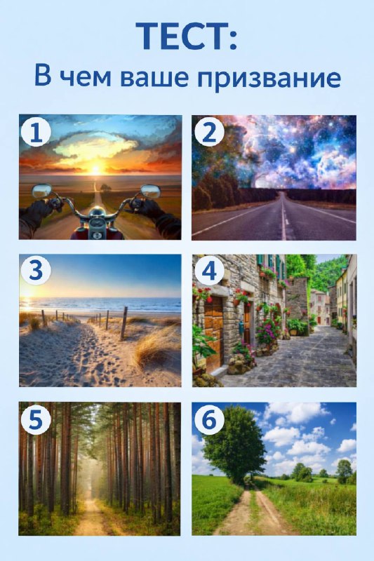 Расшифровка теста «В чем ваше призвание?» 1️⃣ Мотоцикл — свобода Ваша особенность — внутренняя устойчивость и независимый характер. Вам важно чувствовать, что вы сами управляете своей жизнью и приним