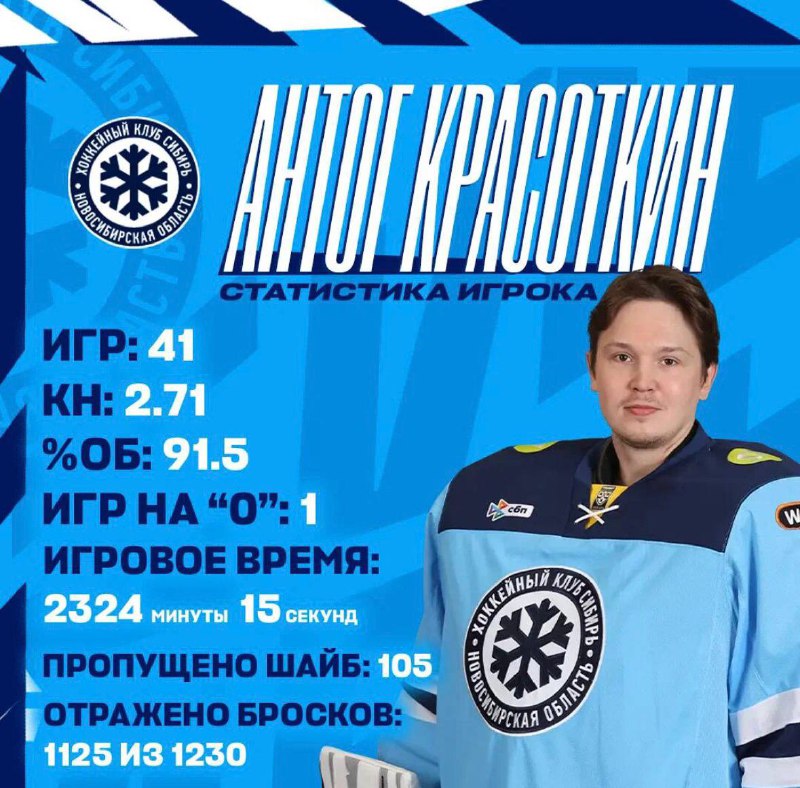 ❄️ Статистика нашего голкипера Антона Красоткина в текущем сезоне