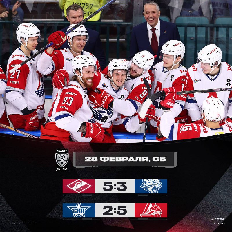 🏒 Результаты прошедшего игрового дня в КХЛ: 5:3 | Спартак 🔴 – Барыс 🦁 2:5 | СКА ⭐️ – Локомотив 🚂