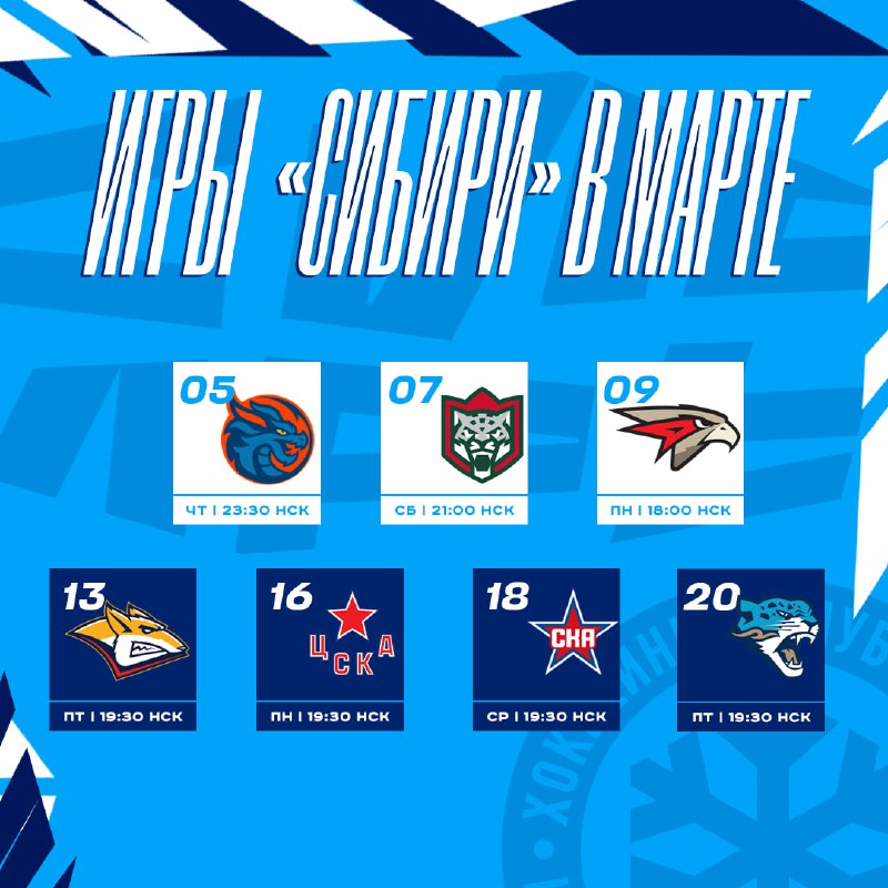 ❄️ Расписание всех игр «Сибири» в марте 🐉 05.03 ❄️ – вынесенная игра в Шанхае. Сохраняйте, чтобы на забыть! ✅