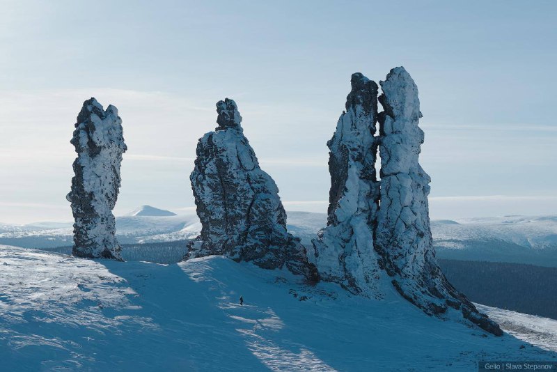 ⛰️⛰️Любуемся одним из самых удивительных мест России Плато Маньпупунёр в Республике Коми известно на всю страну. Здесь посреди тайги стоят семь каменных столбов — высотой до 42 метров. Когда-то это