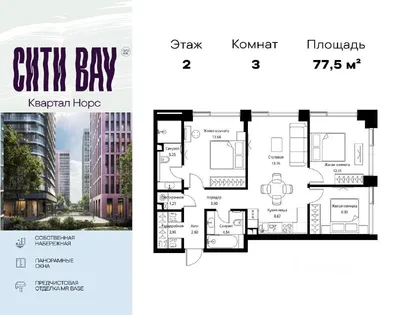 Новый лот на продажу ⚡️⚡️ 3-комнатная квартира 77,47 м² в ЖК Сити Бэй, квартал Норс. 2 этаж из 10, потолки 3,15, предчистовая отделка white box, когда вы не спорите со вкусами прошлого владельца, а с