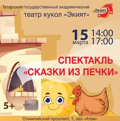 🎭 Друзья, приглашаем вас 15 марта на спектакль от ведущих артистов Татарского государственного академического театра кукол «Экият»! 🌟 В зале «Атом» состоится удивительно добрый, полный юмора и муз