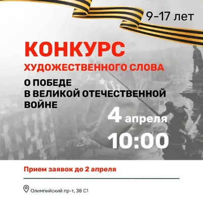 🎗️ Друзья, Художественно-исторический центр «Сириус» приглашает вас стать участниками Конкурса художественного слова о Победе в Великой Отечественной Войне! 🎤 Участникам предлагается подготовить ст