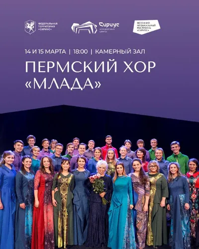 Бренд Пермского края на сцене Сириуса. Хор «Млада» уже завтра на сцене Концертного центра Предстоящие выходные будут наполнены мастерством хорового пения одного из лучших коллективов страны. Пермски