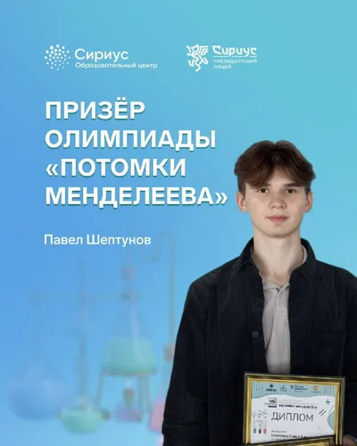 «Потомки Менделеева» глазами призёра. Разговор о подготовке к олимпиадам и планах на финал ВсОШ Десятиклассник Президентского Лицея «Сириус» Павел Шептунов стал призёром Всероссийской олимпиады по хи