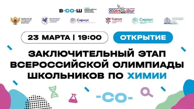 Подключайтесь онлайн к торжественной церемонии открытия заключительного этапа ВсОШ по химии Сегодня в 19:00 в Сириусе стартует заключительный этап Всероссийской олимпиады школьников по химии. Школ