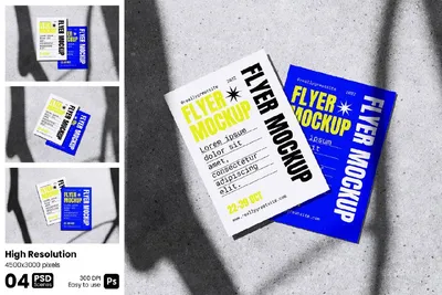 Макет флаера для брендинга Четыре PSD‑файла 4500×3000 px для оформления рекламных листовок. Поддерживаются смарт‑объекты, регулируемые фон и свет, а также аккуратно структурированные слои. Справочный