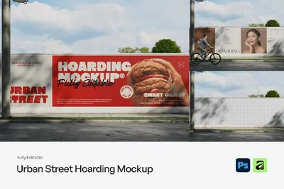 Макет уличного щита Один PSD‑файл 4000×3000 px с реал��стичным городским ландшафтом позволяет показать большой уличный баннер. PSD‑файл содержит все слои, а в комплект входит PDF‑руководство. Отлично