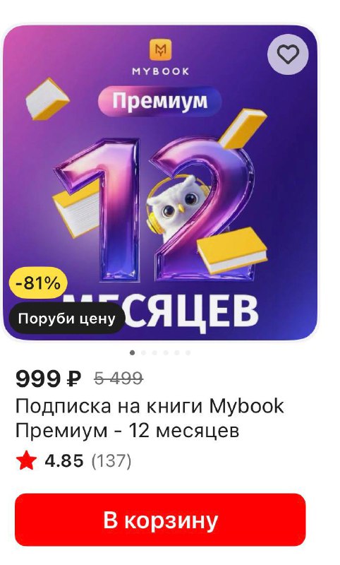 Кто пропустил в комментах На м видео цена за год на премиум MyBook 999₽ Исходя на цены за книги - это просто супер Я уже ✔️
