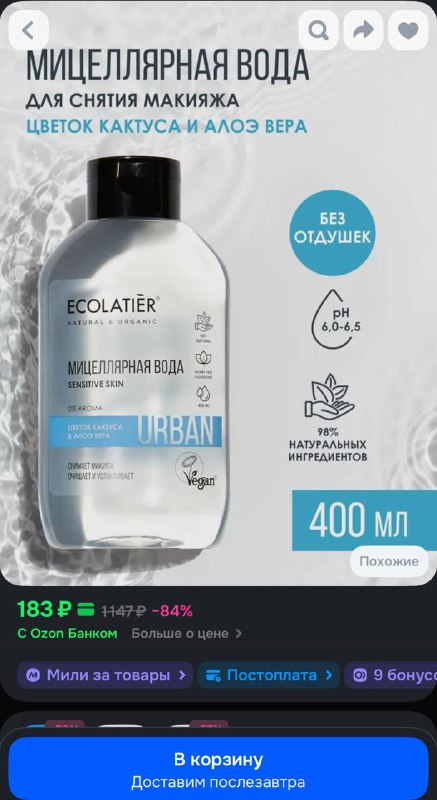 ECOLATIER / Мицеллярная вода для снятия макияжа, 400 мл https://ozon.ru/t/jQiEB1E 150 бонусов продавца🔥 Определённо👉 Скидка найдена! Мы в MAX 🔗 Все наши каналы