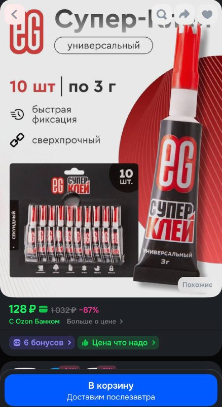 Супер клей секундный универсальный ЕВРОГАРАНТ блистер 10 штук https://ozon.ru/t/UyCKxeB Определённо👉 Скидка найдена! Мы в MAX 🔗 Все наши каналы