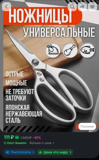 Ножницы кухонные усиленные, универсальные 🖇https://ozon.ru/t/7WFxOTZ