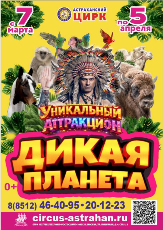 🎪 В Астраханском Государственном цирке новое шоу «Дикая планета». Промокод БИЗОН даёт 20% скидку на любой билет на следующие представления: 8 марта (вс) 12:00 и 16:00 9 марта (пн) 14:00 14 марта (