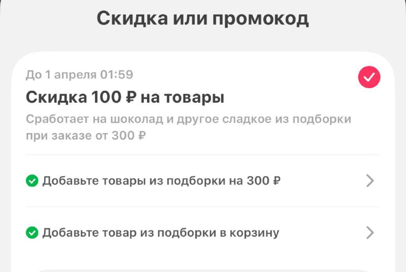 🛴 САМОКАТ 🛴 1️⃣Заходим в раздел "Скидка или промокод" 2️⃣Добавить один товар из подборки и два товара из второй подборки как на скрине, нажать применить Больше обзоров распродаж в нашей секретной
