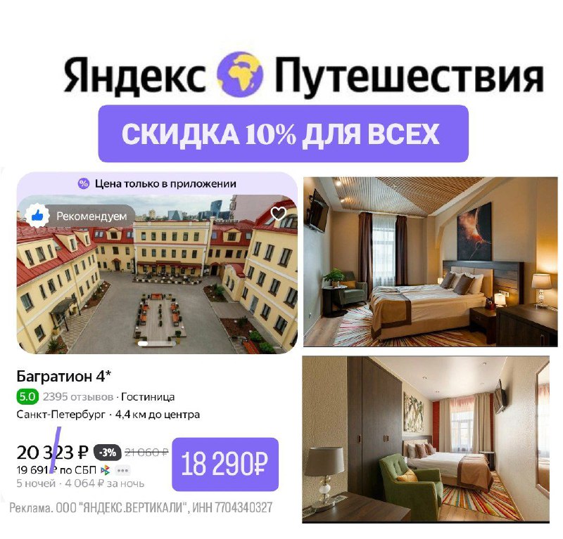 🌍 Яндекс Путешествия ❗️ТОЛЬКО СЕГОДНЯ 🟣 PF-ASIAIO-P3APJ Скидка 10% на одно бронирование отеля или иного жилья за рубежом (без ограничения по сумме скидки) Скидка действует только в приложении