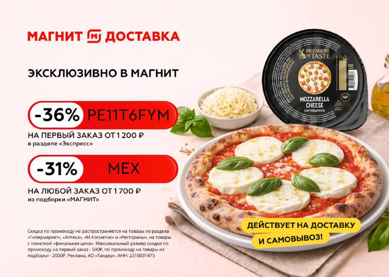 ✅ Магнит: акции и доставка Собирайте корзину по ссылке Вводите промокод: 👉🏻 PE11T6FYM — скидка 36% на первый заказ от 1200 ₽ в приложении «Магнит Доставка» в разделе «Экспресс» 👉🏻 МЕХ — скидка
