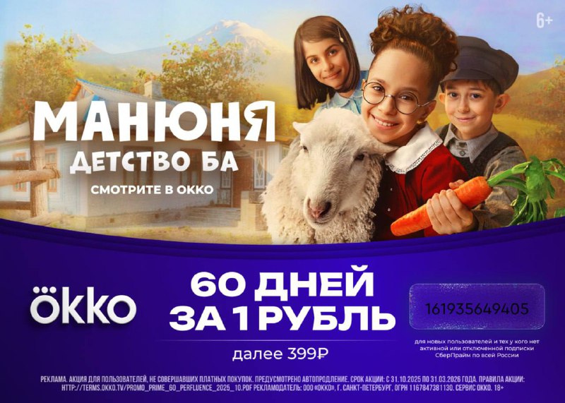 ✅ Подписка Okko 👉🏻 161935649405 — 60 дней за 1 рубль для новых пользователей Ссылка для оформления подписки Акция для пользователей, не совершавших платных покупок #okko #кино #подписка #беспл