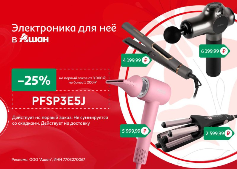 ✅Промокод в Ашан! Вводите промокод: 👉🏻 PFSP3E5J — скидка 25% от 3000₽, не более 1000₽ Заказывайте онлайн Не суммируется со скидками. Действует на доставку #ашан #продукты #доставка #скидки ⬇️