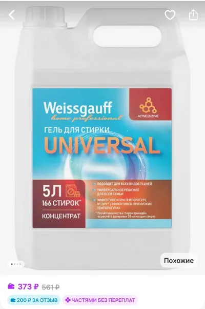 Weissgauff Гель для стирки 5 литров автомат Universal универсальный https://www.wildberries.ru/catalog/583509275/detail.aspx?size=797628393 Ставь ❤️ если понравилось