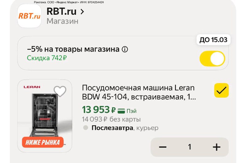 Цена с промокодом в корзине, может зависеть от аккаунта https://market.yandex.ru/cc/8tHBwk?erid=5jtCeReNx12oajxTXbAmzJj