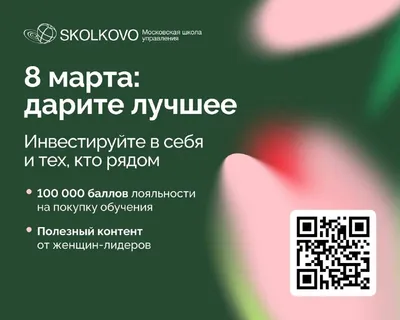 8 марта — повод поблагодарить женщин, которые формируют команды, принимают решения и меняют профессиональную среду. К этому дню Школа управления СКОЛКОВО подготовила специальные предложения для учас