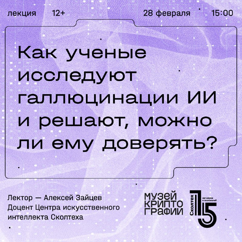 📹 Для тех, кто не смог лично посетить лекцию Алексея Зайцева, доцента Центра искусственного интеллекта Сколтеха о галлюцинациях ИИ, — у нас есть новости. Мы выложили запись лекции, и теперь вы можете