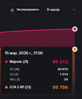 65 тысяч игроков на серверах Majestic ! ❤️❤️❤️ А ведь ровно год назад онлайн составлял 28-30 тысяч игроков.