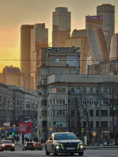 Вид на Москва-Сити с Бородинского моста. Если не знать, то можно подумать, что небоскрёбы пририсованы нейросетью или при помощи фотошопа - настолько разительный контраст в кадре. Автор фото - Кирилл