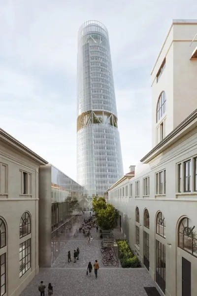 Небоскрёб-труба в Милане. Башня A2A Life Tower высотой 145 метров. По задумке башня должна напоминать маяк, причём ассиметричный. Но гораздо больше похоже на трубу или градирню, наклонённую подобно П