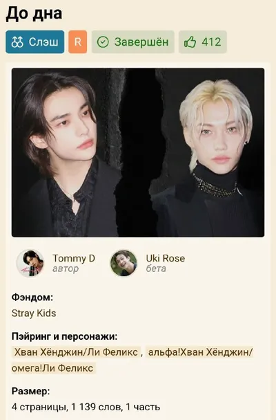 🍓 | #Хенликсы Название: До дна Автор: Tommy D Рейтинг: #R Размер: #мини | 1 часть • 4 стр Статус: #завершён 🖇Ссылка: https://ficbook.net/readfic/018aa419-82f0-713d-bf10-55c2b9808c8b ➢ @skzff_