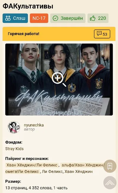 🫧 | #Хенликсы Название:ФАКультативы Автор: nyunechka Рейтинг: #NC17 Размер: #мини | 1 часть • 13 стр Статус: #Завершён 🖇Ссылка: https://ficbook.net/readfic/019c9ff3-e5a2-7d15-98a8-1ffa29b0