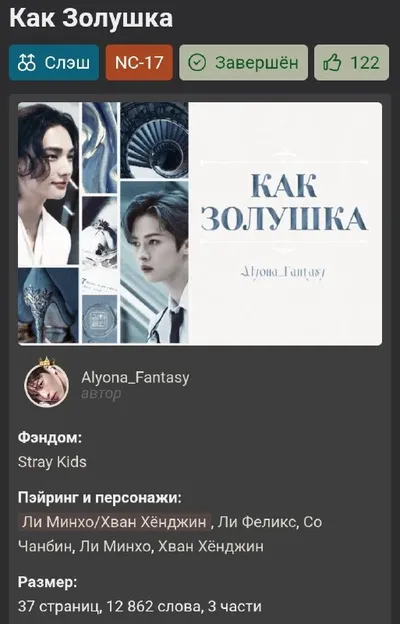 🪼 | #Хенхо #Феликс #Чанбин Название: Как Золушка Автор: Alyona_Fantasy Рейтинг: #NC17 Размер: #миди | 3 части • 37 стр Статус: #Завершен 🖇Ссылка: https://ficbook.net/readfic/019c9af1-a326-7b