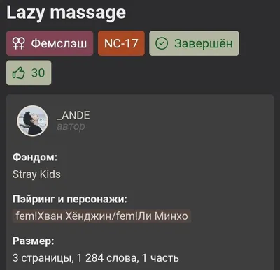 🪼 | #Хенхо Название: Lazy massage Автор: _ANDE Рейтинг: #NC17 Размер: #мини | 1 часть • 3 стр Статус: #Завершен 🖇Ссылка: https://ficbook.net/readfic/01981a32-55b1-7e3c-a5c3-0e20b3aec6f0 ➢ @
