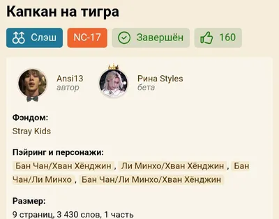 🫧 | #Хенчаны #Хенхо #Банхо #тройник Название: Капкан на тигра Автор: Ansi13 Рейтинг: #NC17 Размер: #мини | 1 часть • 9 стр Статус: #Завершён 🖇Ссылка: https://ficbook.net/readfic/019cc8ac-ac