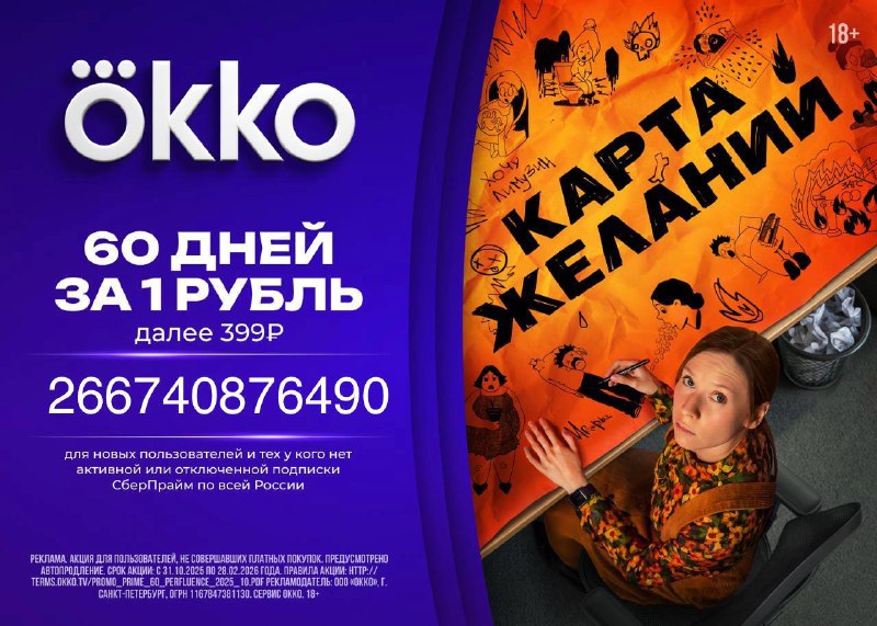 🎥 Новый фильм на Okko — история о решениях, которые мы откладываем, и о неожиданных шансах. Смотрите на Okko на 60 дней за 1 ₽ по промокоду, далее 399₽/мес Промокод ✔️ 266740876490 *Для новых польз