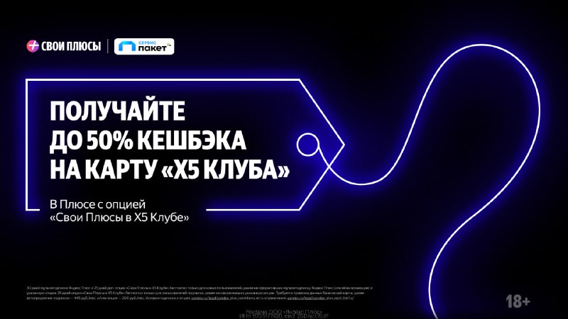 ➕ Яндекс Плюс — 30 дней и бесплатный доступ к опции «Свои Плюсы в Х5 Клубе» на 25 дней Получайте кешбэк на карту «Х5 Клуба» и баллы Плюса ⚡️ Переходите по ссылке: https://gtblg.ru/ckPOWc?erid=2SDnj