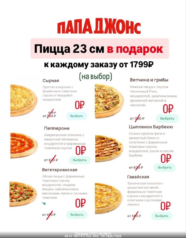 🍕 Пицца 23 см в подарок от Папа Джонс Стоимостью до 620₽ ⚡️ Заказывай по ссылке: https://gtblg.ru/ehRE10?erid=2SDnjeU7BJ9 И применяй нужный промокод: ▫️ pjmcr98 — пицца 23 см в подарок при заказе