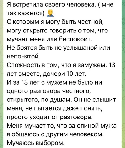 Вы пишете, что стоите перед выбором. На самом деле, вы стоите перед задачей: разобраться в отношениях с мужем. Второго мужчину давайте пока вынесем за скобки. Не потому, что его нет, а потому что он