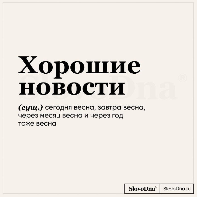 Хорошие новости — сегодня весна, завтра весна, через месяц весна и через год тоже весна Не см. также: Весеннее обосрение