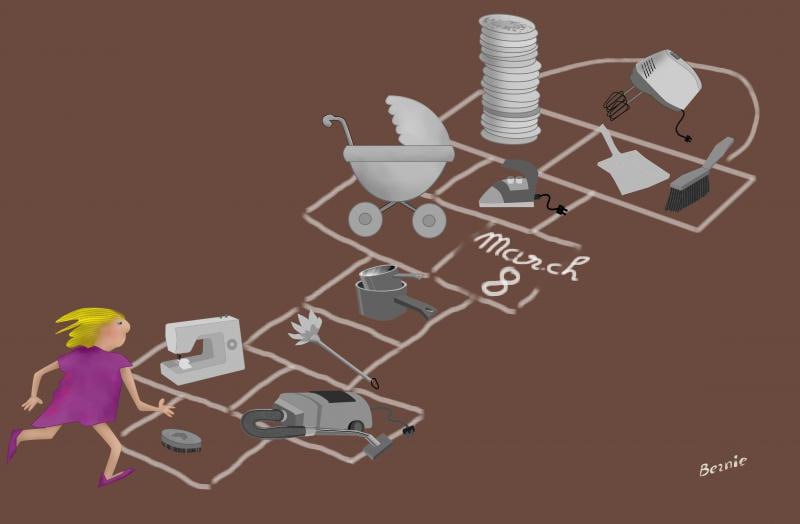 Напомню или скажу для тех, кто не в курсе: во Франции сегодня не праздник, не цветочки-подарочки, а день борьбы за права женщин. Так что вот, держите такой весьма жизненный рисунок художника Бернара Б