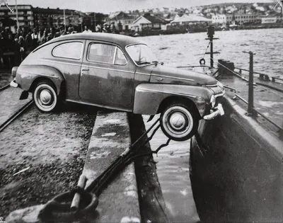 Единственное зафиксированное в истории ДТП машины с подводной лодкой случилось в 1961 году в небольшом шведском портовом городе Люсечиль. Водитель припарковал свой Volvo у здания телефонной станции