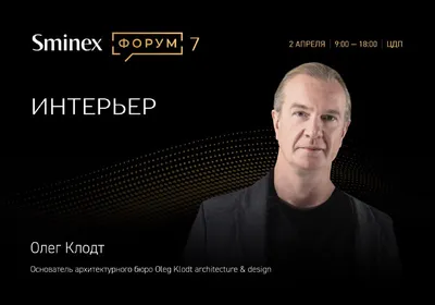 Sminex Форум 7: Олег Клодт Архитектор и дизайнер интерьеров с мировым именем. Входит в топ-50 рейтинга по версии престижного журнала AD. Его работы публикуют в Andrew Martin Design Review — премии, к