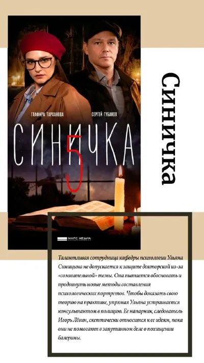 🎬🎬 🎬🎬 😝🥹🥰😂😀😊😤 В этот раз моя Подборка просмотренных сериалов состоит из русских детективных и один медицинский. Их смотрела параллельно турецким, которые ещё выходят. 👉 СИНИЧКА 5 сезо