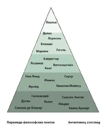 Хотите и вы быть интеллектуалом? Когда-то #третийадмин попытался собрать все философские понты в одну пирамиду от доступного к сложному и главному - благо в ближнем круге интеллектуалы водятся и так и