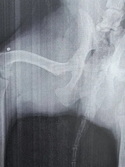 Короче говоря, Френка повели на рентген, потому что он начал прихрамывать. И обнаружили в его задней лапе… пулю. Вы вообще можете себе такое представить? 🤯 Теперь сидим и думаем, сколько же всего он