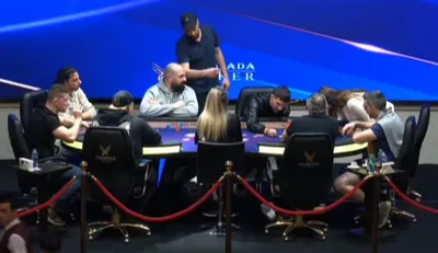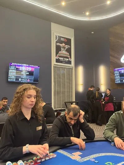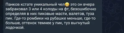 Короче прикол. Щас идет ТВ стол говно серии на Кипре (казино Чамада). Колода наша, как в Калиниграде (картонная со звездой). За столом наш товарищ (Алексей Жуков) пожаловался, указывая на дефект (мом